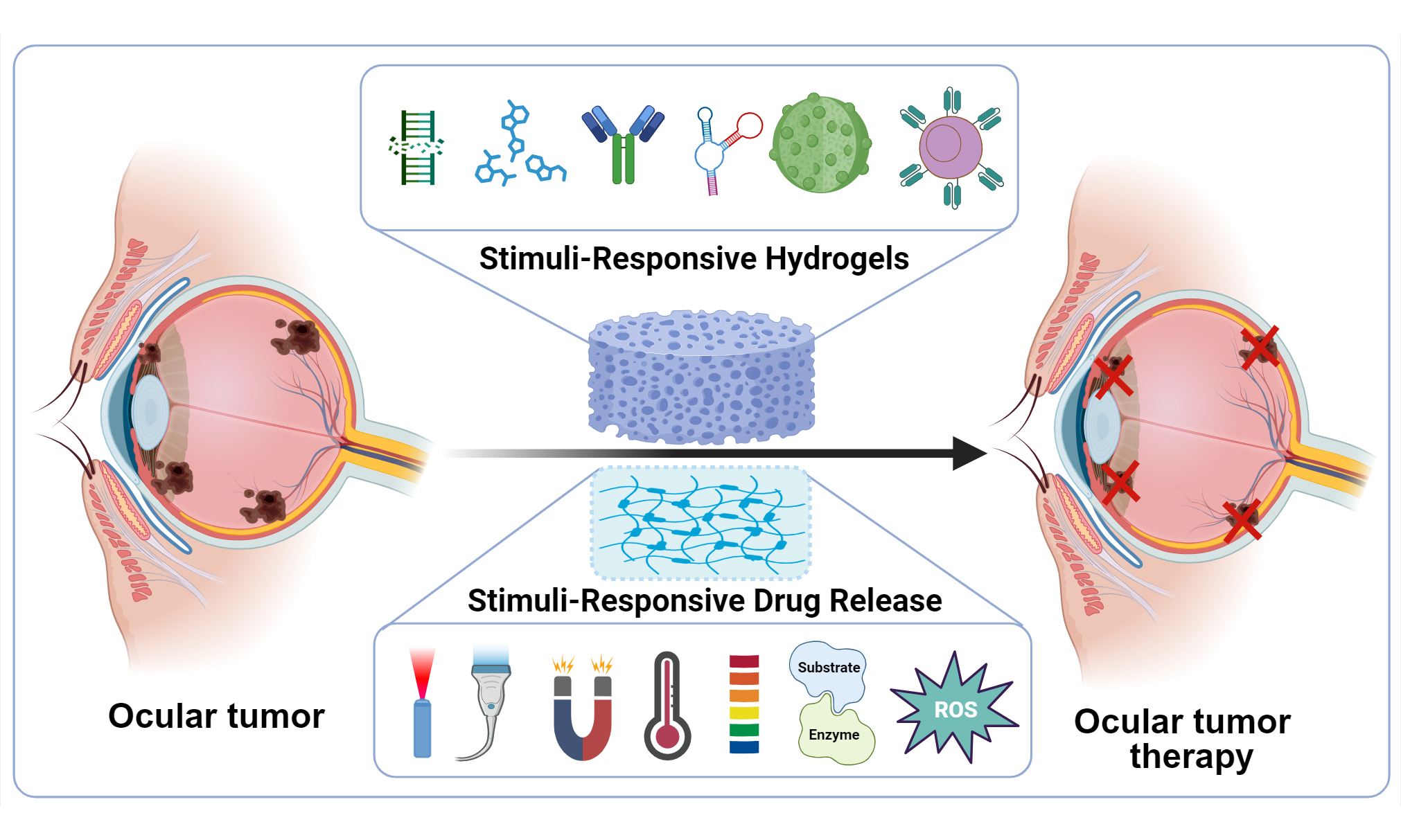 Stimuli-responsive hydrogels show great promise for ocular tumor therapy due to their excellent local retention, on-demand drug release, and favorable biocompatibility. By enabling spatially and temporally controlled delivery, these systems can enhance radio-sensitization, improve the precision of chemotherapy, and support effective postoperative adjuvant treatment. Consequently, stimuli-responsive hydrogels are increasingly viewed not only as powerful adjuncts to existing regimens but also as potential alternatives to conventional ocular tumor therapies.